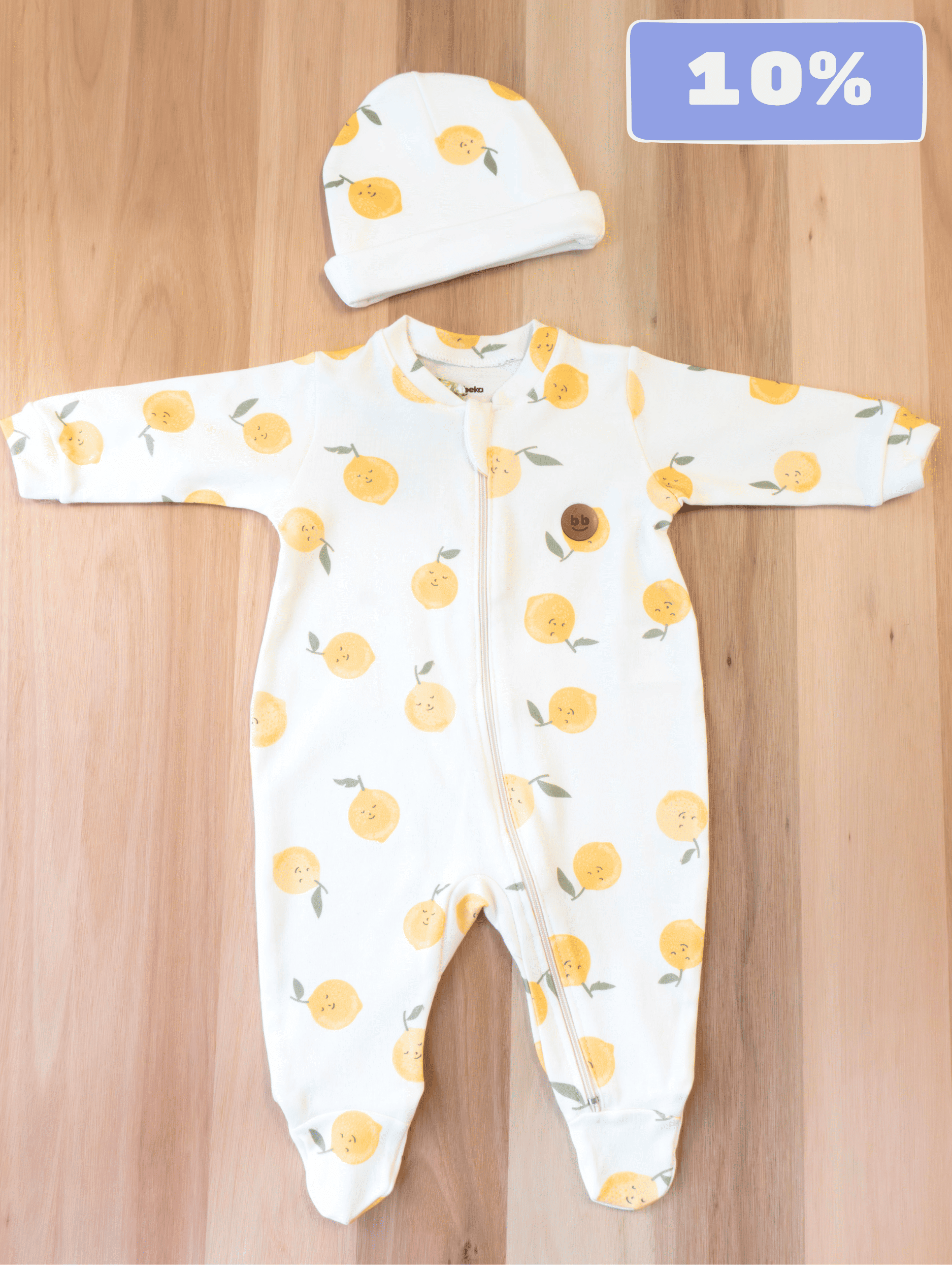 O Macacão Limão Siciliano com Zíper Protegido e Pezinho é a escolha perfeita para garantir conforto e estilo ao seu bebê. Feito em tecido macio e respirável, possui zíper frontal protegido, facilitando a troca de roupa com segurança. O pezinho integrado mantém o bebê sempre aquecido, enquanto a estampa de limão siciliano adiciona um toque alegre e sofisticado. Ideal para todas as ocasiões! NÃO INCLUI TOUCA, vendida separadamente.